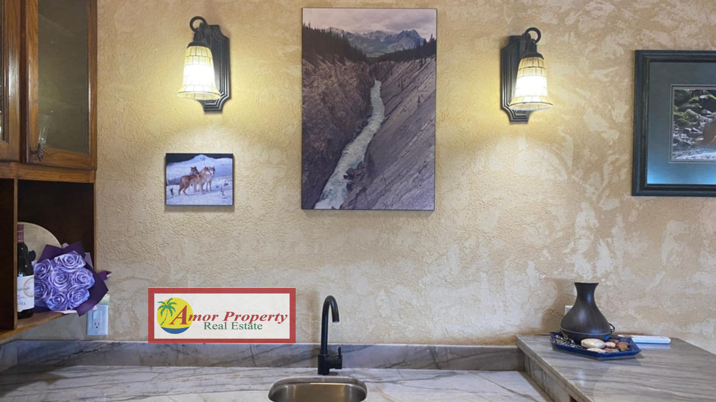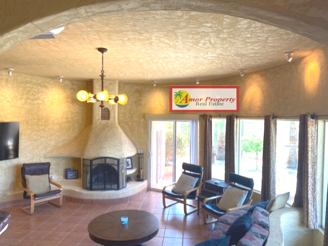 The main residence features a charming circular living room with a fireplace evening. Entertain with ease in the newly remodeled kitchen with new upgraded appliances and Cortez kitchen counters, kitchen Island and dining area. And mix up your favorite drinks at the full bar area complete with a sink, shelving, Cortez countertops and bar stools.